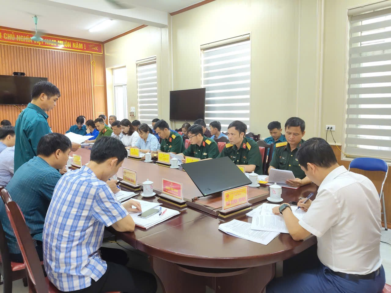 cấp ủy Đảng, chính quyền địa phương, công an xã, các ban ngành, đoàn thể, Bí thư Chi bộ, Trưởng thôn, và các đồng chí trong Hội đồng nghĩa vụ quân sự xã