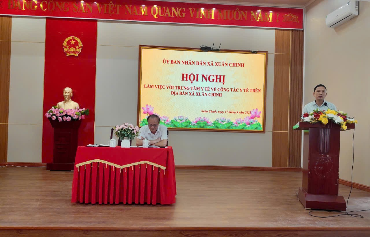 Sáng ngày 17 tháng 9 năm 2025, tại Hội trường UBND xã Xuân Chinh, đã diễn ra buổi làm việc giữa lãnh đạo UBND xã và Giám đốc Trung tâm y tế Thường Xuân nhằm đánh giá thực hiện công tác y tế trong thời gian qua, đồng thời trao đổi, thảo luận các phương hướng, giải quyết nâng cao chăm sóc sức khỏe nhân dân trên địa bàn xã Xuân Chinh trong thời gian tới.